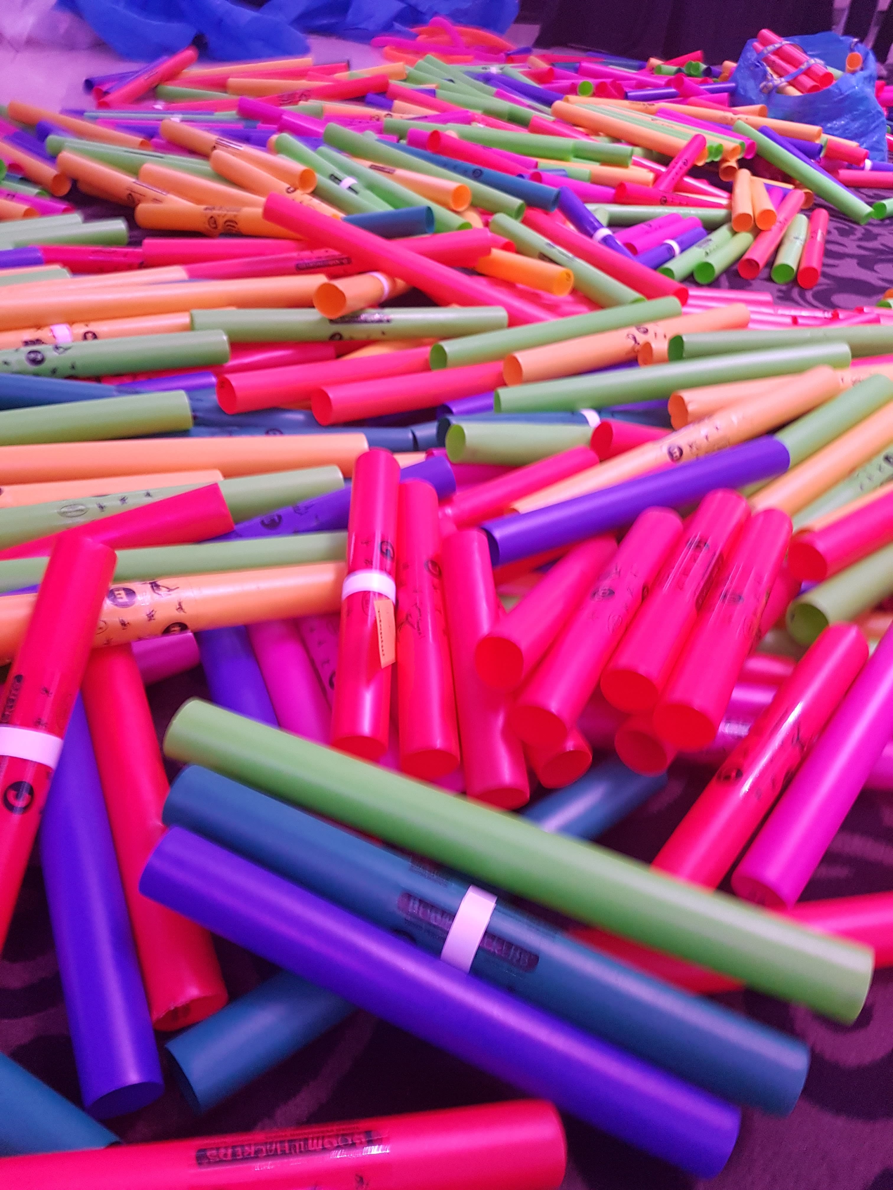 We use Boomwhackers—those brightly coloured, hollow plastic tubes tuned to specific musical pitches by length.