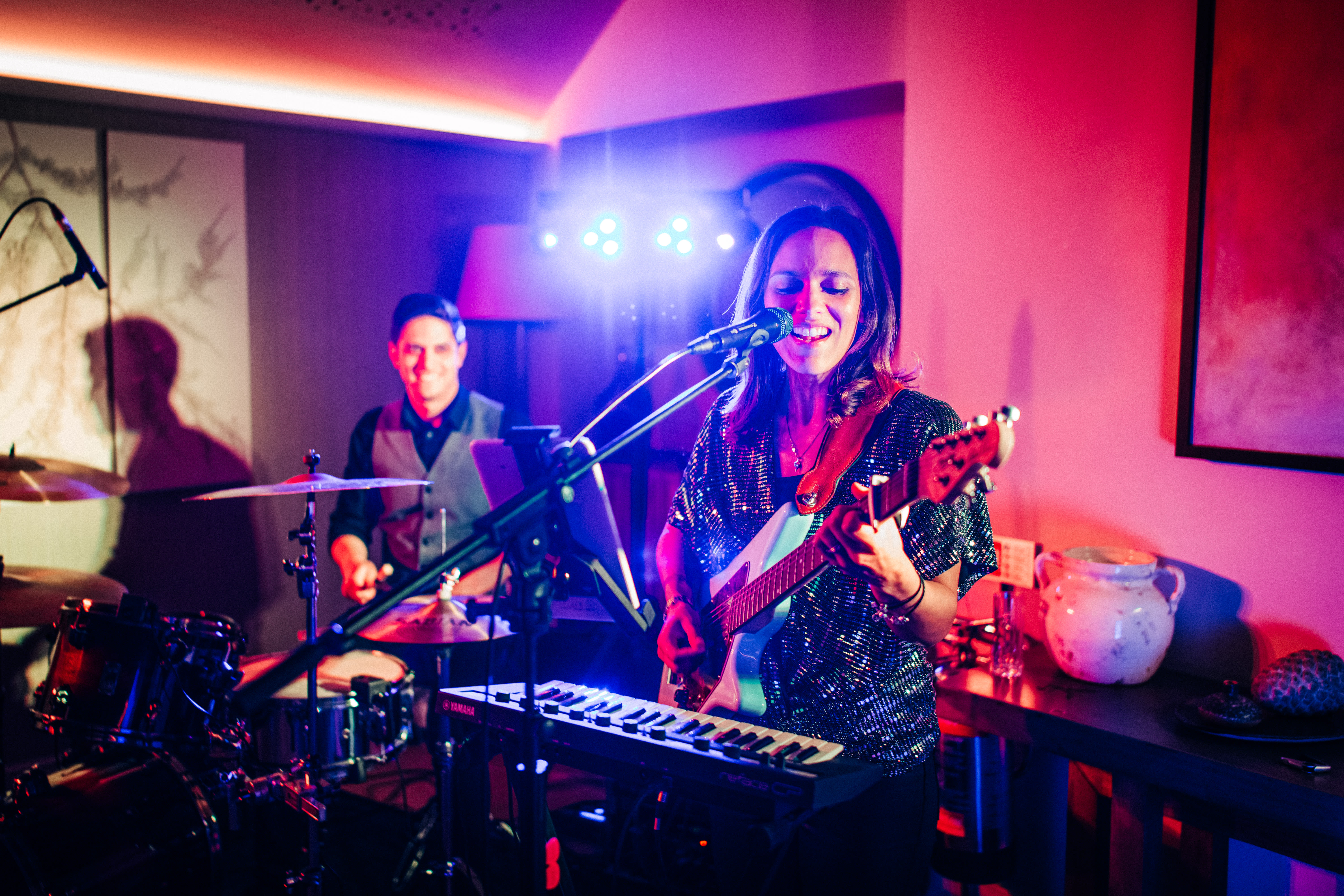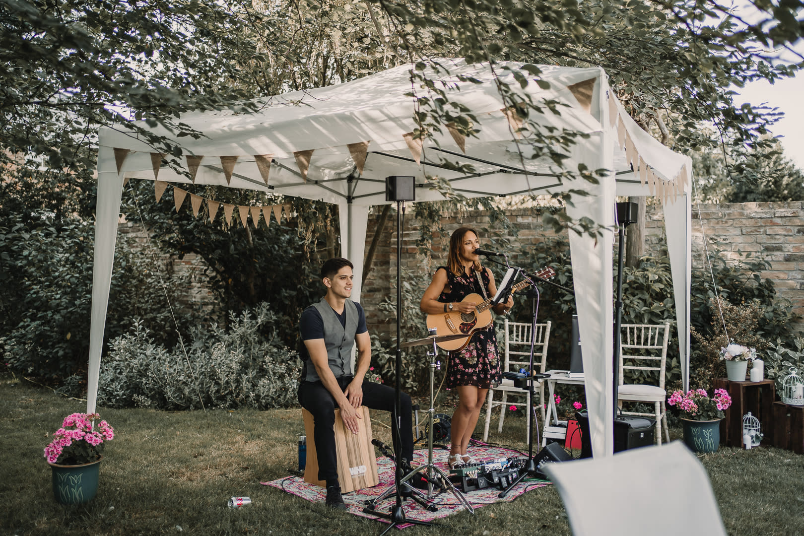 Bethany Jane & Bro offers an acoustic setup that is ideal for ceremonies, cocktail hours, and drinks receptions. This duo is happy to learn up to three new songs for your wedding ceremony and can vary their playlist to suit your style. Their electric setup is more suited towards evening reception events. This option includes live vocals, drums, guitar, keyboard, and customised backing tracks. The combination of these elements creates a lively atmosphere, perfect for getting your guests on the dancefloor!