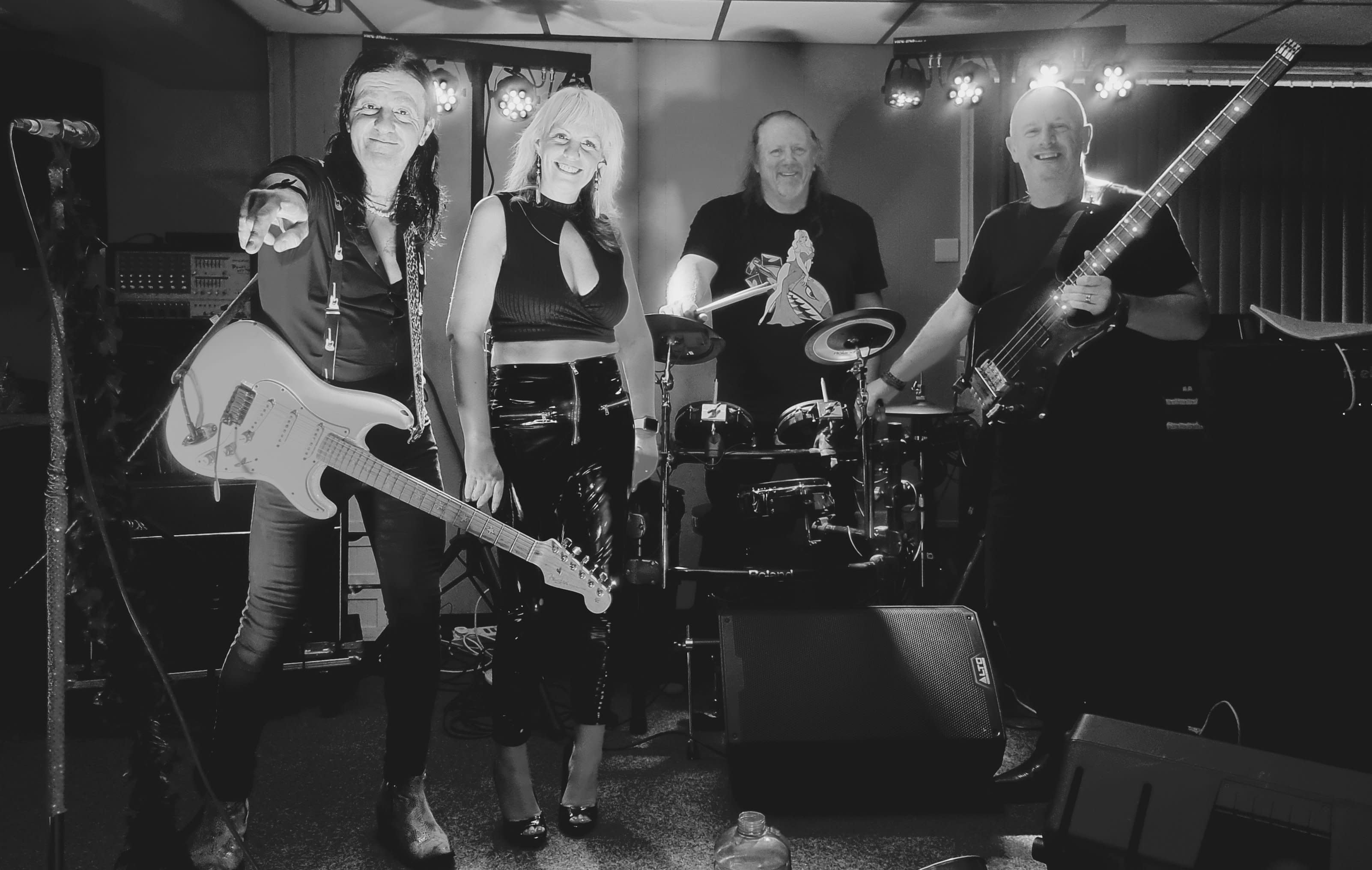 Perfect for big functions, weddings, social clubs, and pubs, Bombshell delivers unforgettable musical experiences that celebrate the trailblazers of rock. Our lineup includes Louise "Miss Bombshell" on vocals, Wayne on lead guitar, Jon on bass guitar, and Mark "Bongo" on drums.