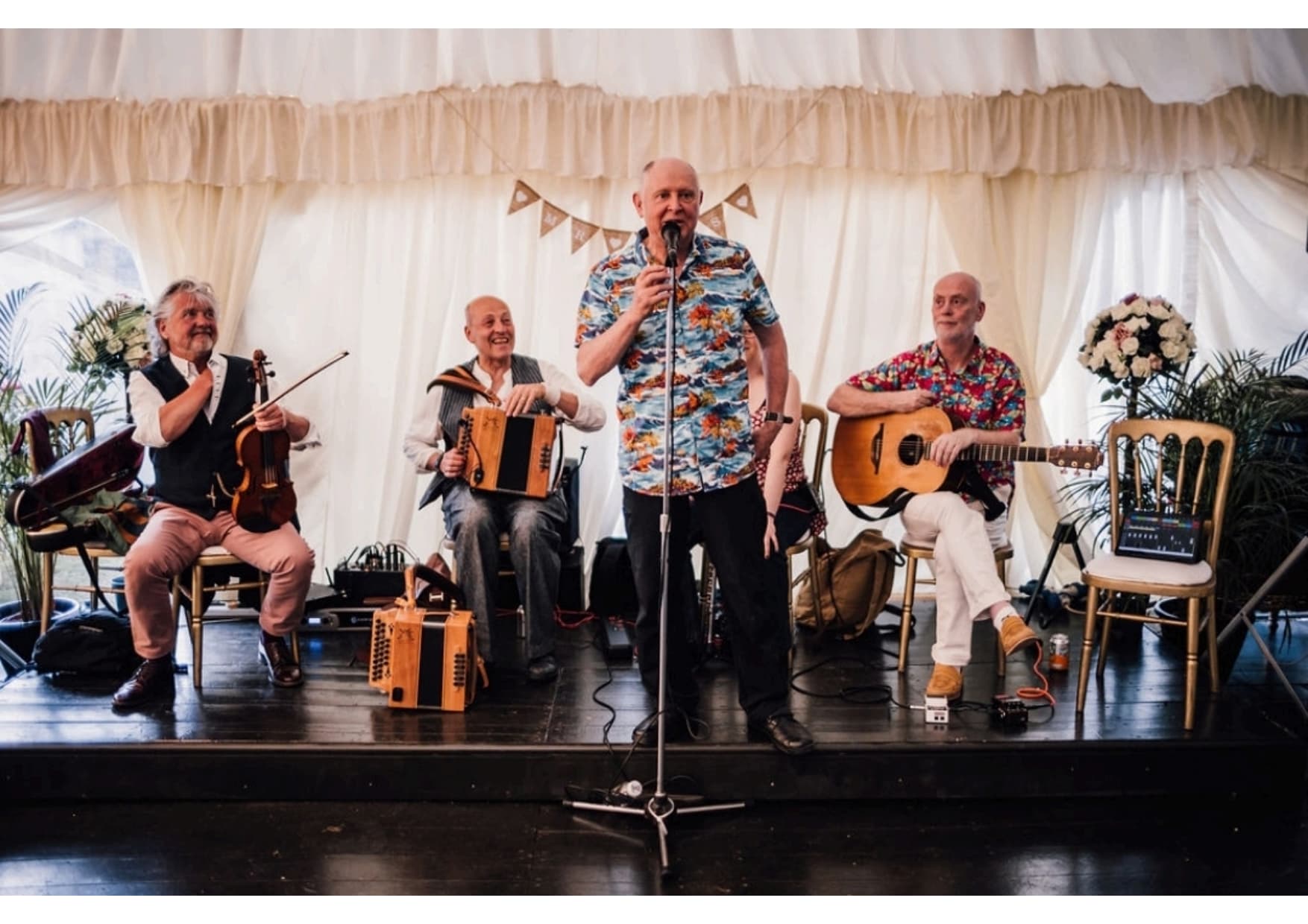 Members of the band are all full-time musicians specialising in traditional folk music, and bring this experience to every performance. You'll know that all of the practical, professional, and logistical arrangements will be clear in advance, and you'll hear the difference in the performance...