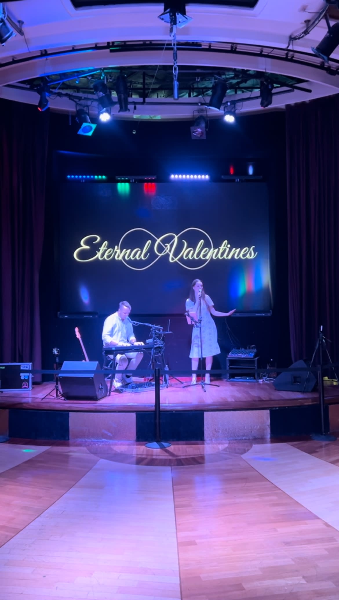 The Eternal Valentines are a live looping duo made up of Theo on electric guitar/keys and Charlotte on vocals. They use a looper pedal to layer multiple instruments via a midi-keyboard such as bass, drums, guitar and keys to create the sounds of a full band.