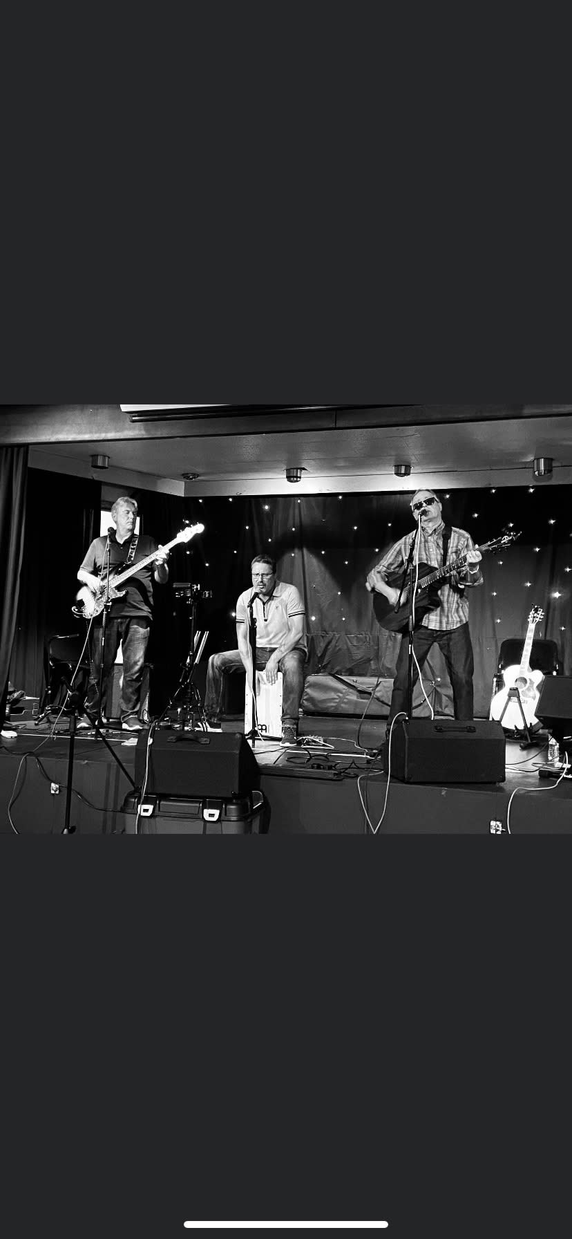 Great harmonies and a full sound from a semi acoustic trio using Electro/acoustic guitar, cajon drum and electric bass. So our sound and space can be adjusted to fit any venue.