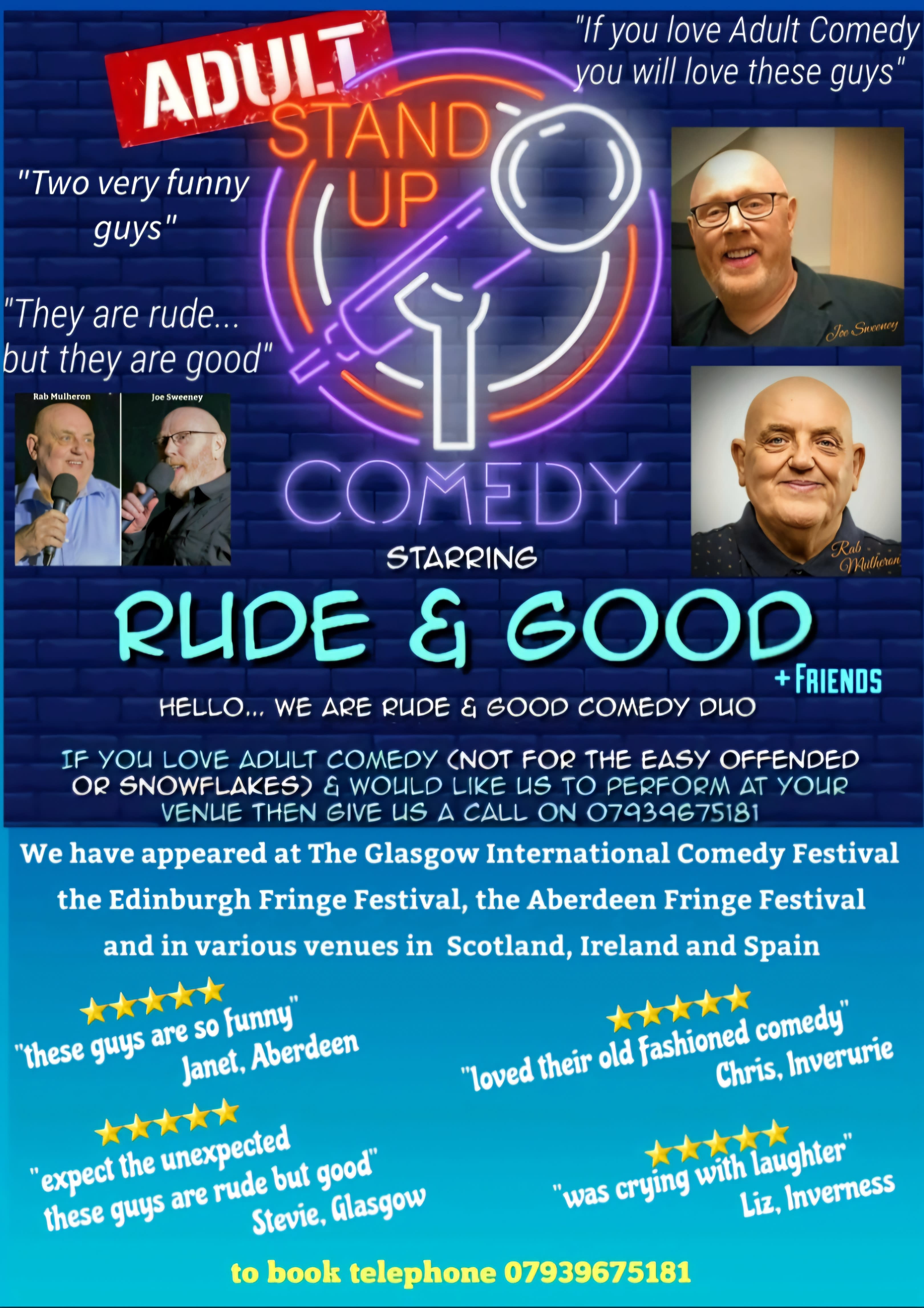 Rude & Good Comedy a duo that can do both Adult Comedy or Stand Up Comedy we can bring laughter to any type of audience...