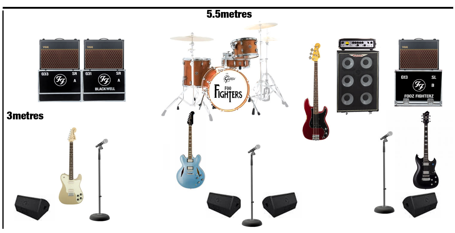 Attached is image of our stage set. we do 1 hr sets and 2hr 15 minutes sets.