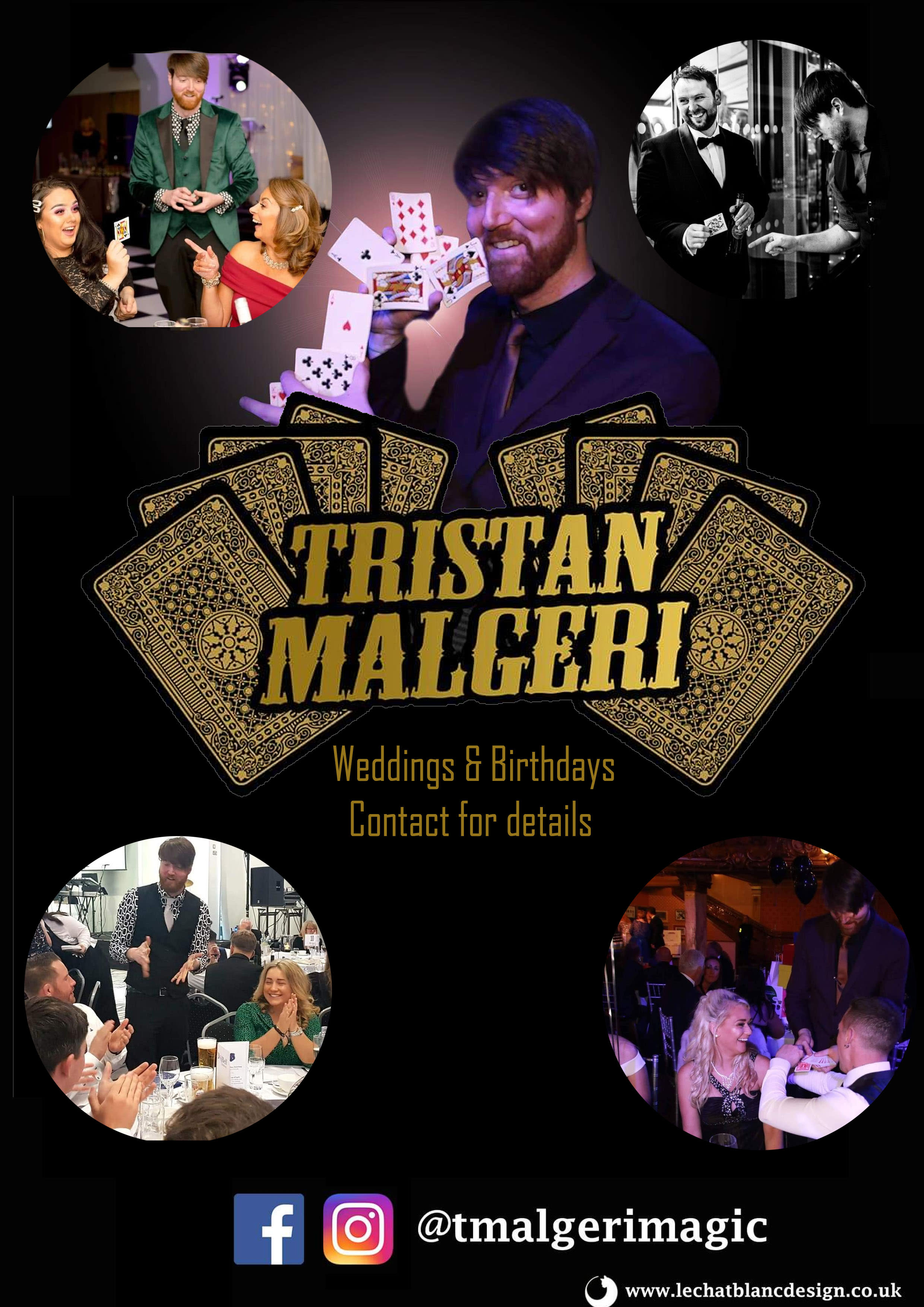Contact Tristan for a quote on Facebook: Search Tristan Malgeri Magic